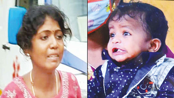 இதில் ஒன்றரை வயது மகன் சரண் பலியானான். 4 வயது மகள் சஞ்சனா ஆஸ்பத்திரியில் சிகிச்சை பெற்று வருகிறார்.