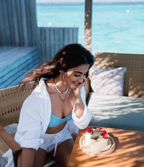 நடிகை பூஜா ஹெக்டே இன்று தனது 33வது பிறந்தநாளை மாலத்தீவில் தனியாக கொண்டாடி வரும் நிலையில், கேக்குடன் அவர் எடுத்துக் கொண்ட புகைப்படத்தை தற்போது இன்ஸ்டாகிராம் பக்கத்தில் வெளியிட்டு ரசிகர்களுக்கு கவர்ச்சி ட்ரீட் கொடுத்துள்ளார்.