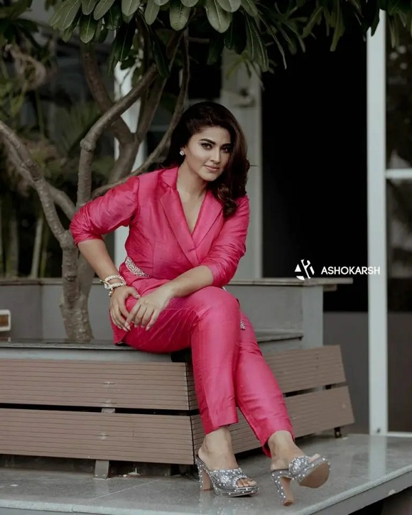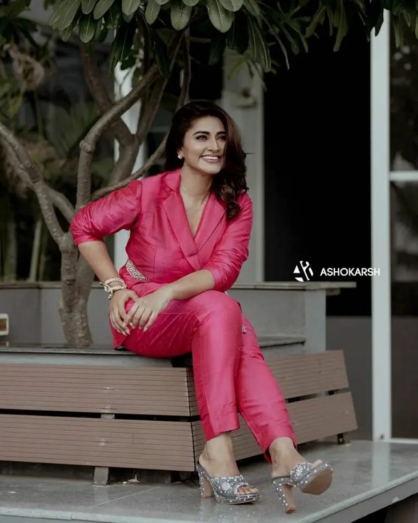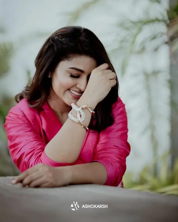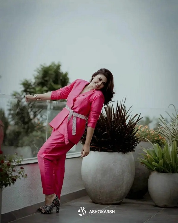 பிங்க் நிறத்தில் அவர் அணிந்து இருக்கும் இவர் தன்னுடைய பளீரென்ற சிரிப்பை வெளிப்படுத்தி தன்னுடைய அழகை இன்னும் மெருகேற்றுகிறார். கழுத்தில் எந்த நகை இல்லை என்றாலும் கூட அம்மணியின் புன்னகை ரசிகர்களின் கவனத்தை ஈர்க்கிறது.
