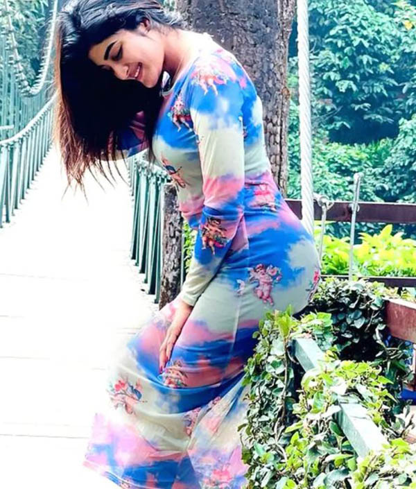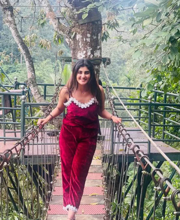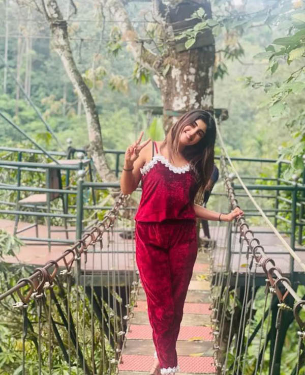 இந்த புகைப்படங்கள் இணையத்தில் வைரலாகி வருகிறது. கடந்த சில நாட்களாக கேரள மாநிலம் வயநாட்டில் டேரா போட்டிருக்கும் இவர் அங்கே எடுத்துக்கொண்ட புகைப்படங்கள் தான் இவை நீல நிறத்தில் உடலோடு ஒட்டிய உடையணிந்திருக்கும் இவர் தன்னுடைய கூந்தலை அள்ளி முடியாமல் கருப்பு அருவிபோல அதனை சரிய விட்டுள்ளார்.