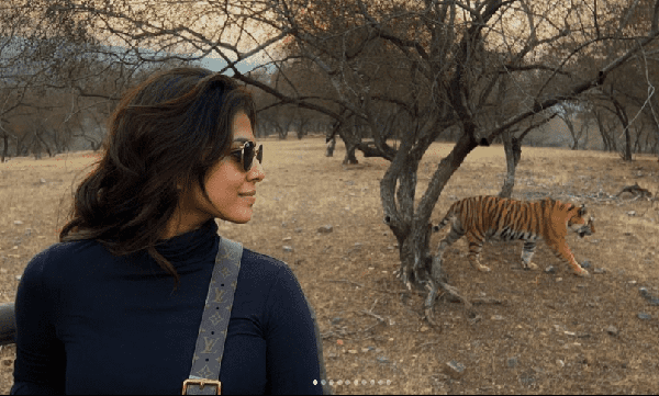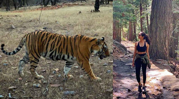 காட்டுக்குள் காட்டிய கவர்ச்சியால் மாளவிகாவை பார்த்து பயந்து ஓடிய புலி : வைரல் வீடியோ!!