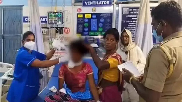 ரத்த வெள்ளத்தி்ல் கீழே சரிந்து விழுந்து ஆபத்தான நிலையில் இருந்த இளம்பெண்ணை அக்கம் பக்கத்தினர் மற்றும் அவரது குடும்பத்தினர்கள் 108 ஆம்புலன்ஸ் முலம் மீட்டு வாலாஜாபேட்டை அரசு தலைமை மருத்துவமனைக்கு தீவிர சிகிச்சை பிரிவில் அனுமதிக்கப்பட்டார்.