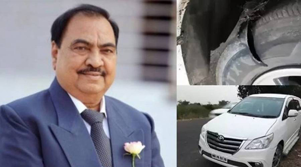 மகாராஷ்டிராவில் கட்டிட திறப்பு விழாவுக்கு சென்ற போது, காரின் டயர் வெடித்து சிதறிய விபத்தில் முன்னாள் அமைச்சர் ஏக்நாத் கட்சே அதிர்ஷ்டவசமாக உயிர் பிழைத்தார்.