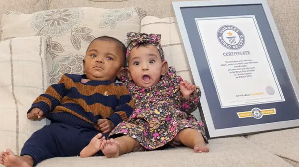 கரு முழுமையாக முதிர்ச்சி அடையாமல் 22 வாரங்களிலேயே பிறந்து, ஆகக் குறைந்த நாள்களில் பிறந்த இரட்டையர்களாக ஏடியா நடராஜாவும் (Adiah Nadarajah) ஏட்ரியல் நடராஜாவும் (Adrial Nadarajah) இந்த சாதனையை படைத்துள்ளனர். குழந்தைகள் இருவரும் 126 நாள்களுக்கு முன்னதாகவே, 2022 மார்ச் 4-ஆம் திகதி பிறந்தனர்.