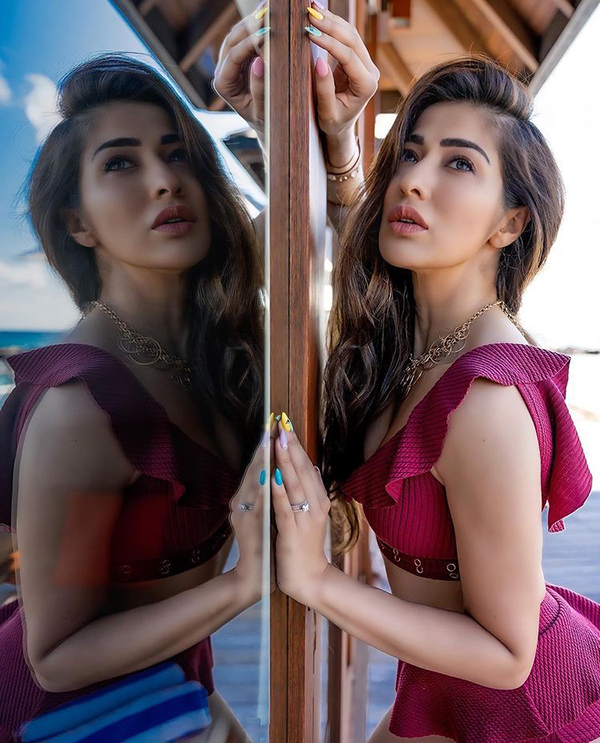 இந்நிலையில், கிளாமரான உடையில் அங்கங்களை காட்டி கண்ணாடி முன்பு நின்று செக்ஸியாக போஸ் கொடுத்து புகைப்படம் ஒன்றை பகிர்ந்துள்ளார்.