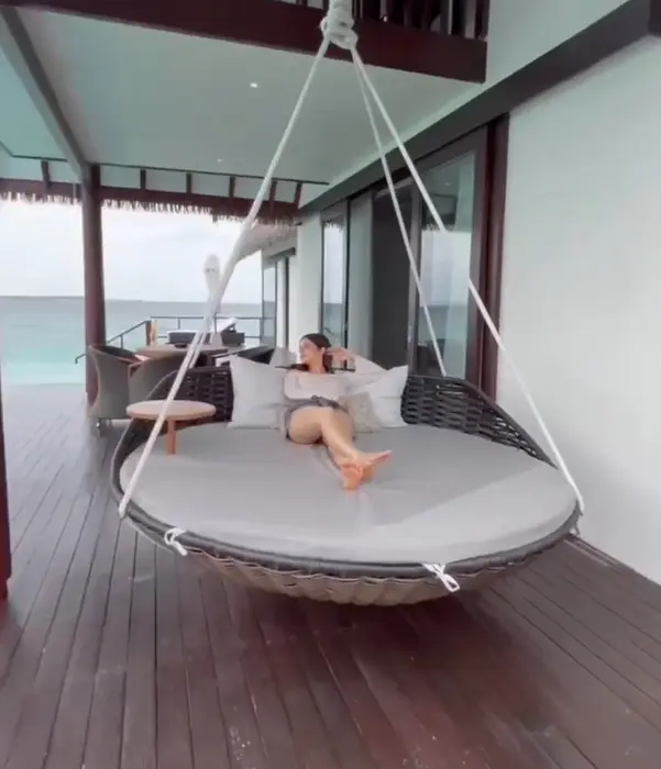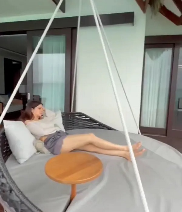 சமீபத்தில் மாலத்தீவுக்கு சென்ற இவர் டு பீஸ் நீச்சல் உடையில் எடுத்துக்கொண்ட புகைப்படங்கள் சிலவற்றை பதிவிட்டு ரசிகர்களை அதிர வைத்தார். தன்னுடைய பால் போன்ற தொடை அழகை எடுப்பாக காட்டி இணையத்தை திணற வைத்தார் அம்மணி.