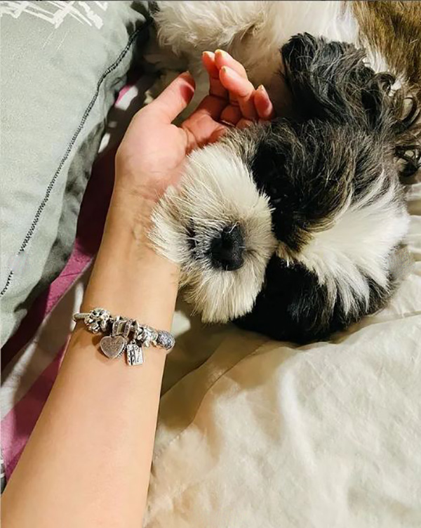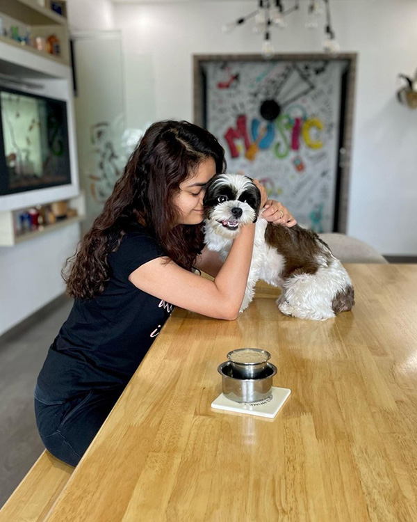 இந்த் நிலையில் வீட்டில் இருக்கும் போது தான் வளர்க்கும் செல்லப்பிராணியுடன் தன் பொழுதை கழிப்பதை வழக்கமாக கொண்ட இவர் தற்போது அந்த நாயுடன் எடுத்துக்கொண்ட செல்ஃபியை இன்ஸ்டாவில் பதிவேற்றியுள்ளார்.