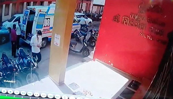 குஜராத் மா.நி.ல.த்.தில் கொரோனாவால் பா.தி.க்.கப்பட்டவரை அழைத்துச் செல்ல வந்த ம.ரு.த்.துவ உதவியாளர் மா.ர.டை.ப்பு ஏற்பட்டு உ.யி.ரி.ழந்த வீடியோ வெளியாகி உள்ளது.