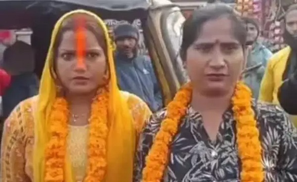 உத்தரபிரதேச மாநிலம் தியோரியா நகரில் உள்ள ஒரு சிவன் கோவிலில், இரண்டு பெண்கள் திருமணம் செய்து கொண்டனர்.
