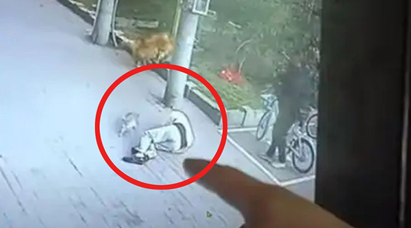 தீடிரென உயரத்தில் இருந்து பூனை விழுந்ததில் அந்த நபர் அங்கேயே சுயநினைவை இழந்து சுருண்டு விழுகிறார்.