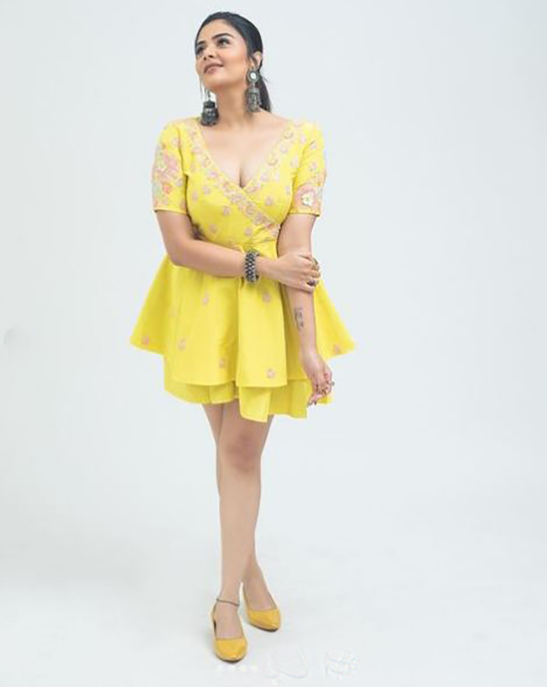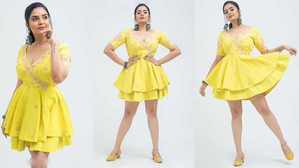குட்டை கவுனில் சகலத்தையும் எடுப்பா காட்டி ஸ்ரீமுகி வெளியிட்ட ஹாட் போட்டோஸ்!!
