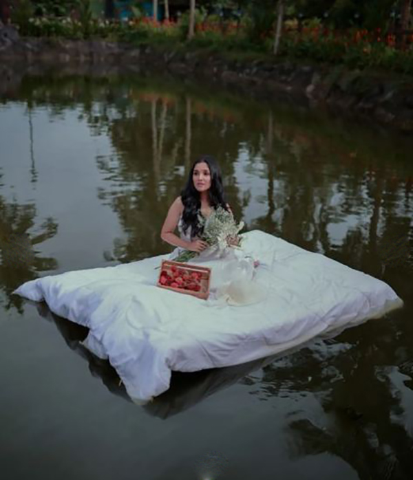 அந்த யோசனையை சுக்கு சுக்கா கிடைக்கும் விதமாக அடிக்கடி கவர்ச்சி புகைப்படங்களை வெளியிட்டு வருகிறார். அந்த வகையில் தற்போது குளத்திற்கு நடுவில் படுக்கையைப் போட்டு இந்த படுக்கையின் மீது படுத்துக் கொண்டு தன்னுடைய அழகை காட்டி ரசிகர்களின் சூட்டை கிளப்பி விட்டுள்ளார் அம்மணி. இதனை பார்த்த ரசிகர்கள் அவருடைய அழகை வர்ணித்து வருகின்றனர்.