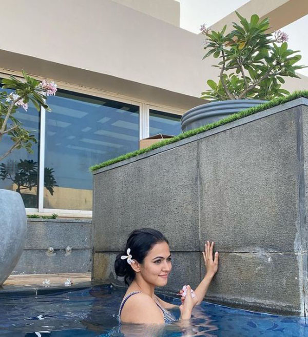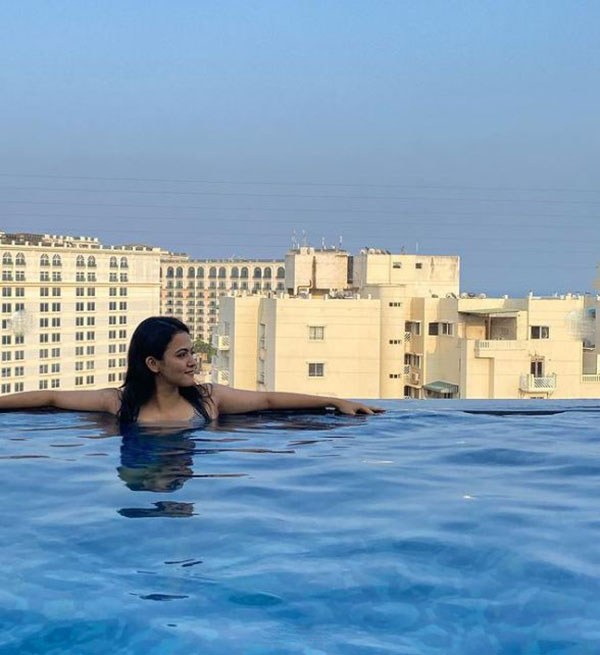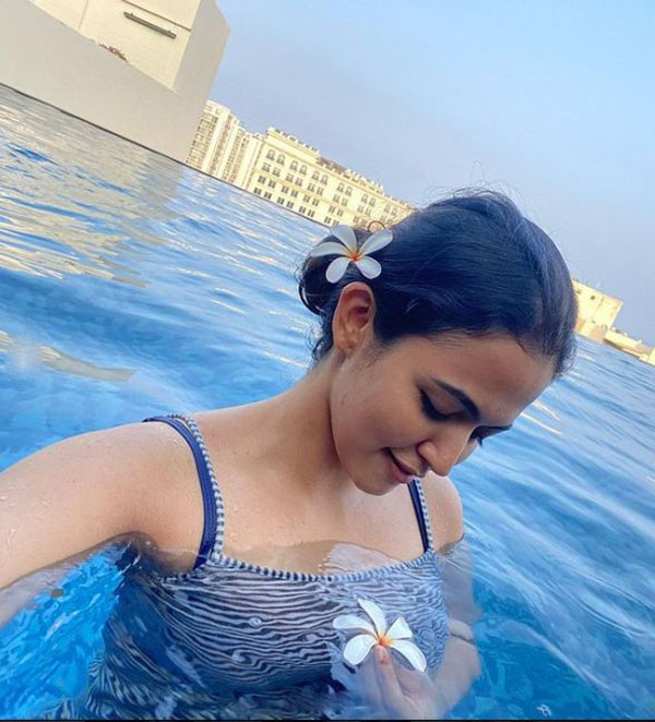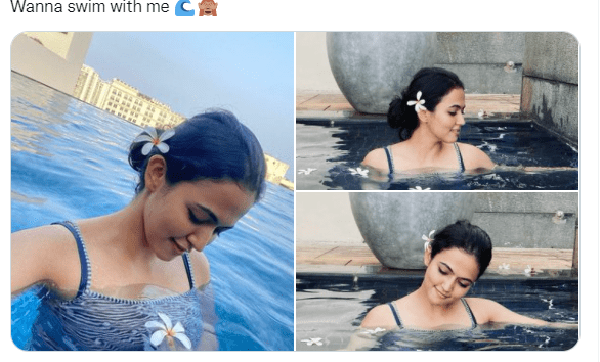 நீச்சல் குளத்தில் குளிப்பது போல புகைப்படம் எடுத்து தனது டிவிட்டர் பக்கத்தில் என்னுடன் குளிக்க யார் ரெடி என கேட்டுள்ளார்.
