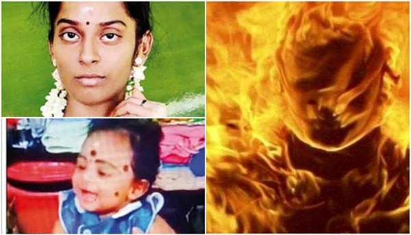 இந்நிலையில், கடந்த வெள்ளிக்கிழமை, பொன்முருகன் வழக்கம் போல் வேலைக்கு சென்றுவிட, குருதேவியின் பெற்றோரும் வெளியில் சென்றுவிட, வீட்டில் தனியாக இருந்த குருதேவி திடீரென கு ழந்தையின் மீதும் தன் மீதும் ம ண்ணெ ண்ணெயை ஊற்றி தீ யை வை த் து ப ற் ற வை த்துக் கொ ண்டார்.