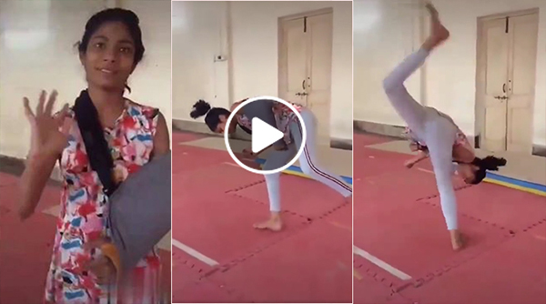 கை ஒடிந்தாலும் தன்னம்பிக்கை உடையாத இளம்பெண்.. அவர் செய்ததை பாருங்க…!