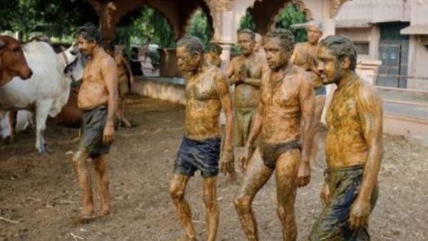 மாட்டுச் சாண குளியல்..