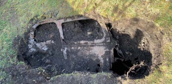 பின்பகுதியில் ஆழமாக தோண்டிய போது காரின் பகுதிகள் உள்ளே புதைக்கப்பட்டிருந்தது தெரிந்தது. 50 வருடங்களுக்கு முன்னர் இந்த கார் புதைக்கப்பட்டிருக்கலாம் என கருதுகிறேன்.