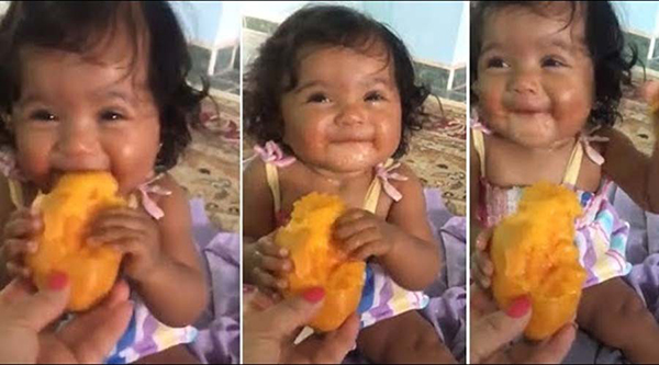 அவ்வாறு இங்கும் குழந்தை ஒன்று முதன்முதலாக மாம்பழத்தினை சாப்பிடுவதும், அதற்காக அக்குழந்தையின் கியூட் ரியாக்ஷனையும் காணொளியில் காணலாம்.