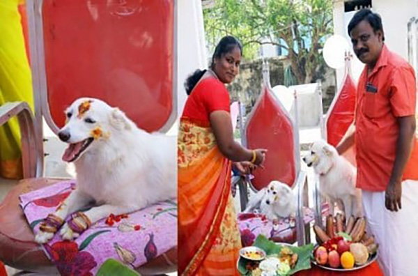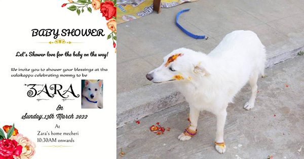 இதனை அடுத்து கடந்த 13-ம் தேதி வளைகாப்பு விழா கோலாகலமாக நடந்து முடிந்துள்ளது. இதற்காக அழைப்பிதழ் அச்சடித்து உறவினர்களுக்கு வழங்கப்பட்டுள்ளது. பின்னர் இரண்டு நாற்காளிகளில் இரு நாய்களையும் அமர வைத்து மஞ்சள், சந்தனம், குங்குமமிட்டு சாராவிற்கு வளையலை மாட்டியுள்ளனர்.