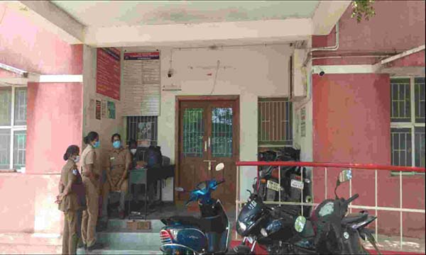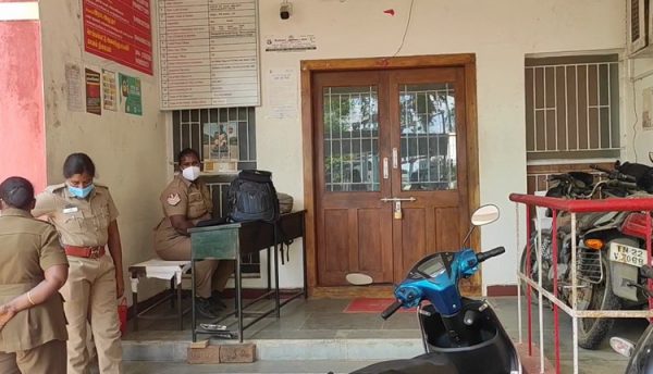 தாமதமாக காவல்நிலையம் வந்த காவலர்களும், புகாரளிக்க வந்த பெண்களும் காவல்நிலையத்துக்கு வெளியே நீண்ட நேரமாக காத்துக்கிடந்தனர்.