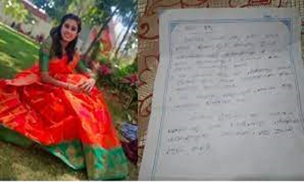 64 லட்ச ரூபாய் கேட்டு கணவர் குடும்பத்தினர் வரதட்சணை கொடுமை செய்ததால் இளம்பெண் தூக்குப்போட்டு தற்கொலை செய்து கொண்டார். சாவதற்கு முன்பு அவர் எழுதிய 5 பக்க கடிதம் தற்போது கிடைத்துள்ளதால் பரபரப்பை ஏற்படுத்தியுள்ளது.