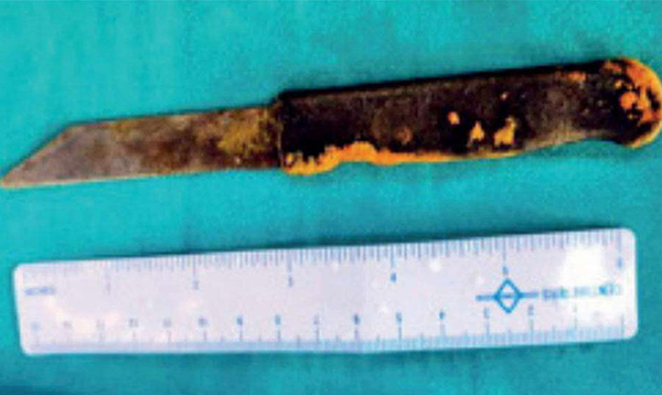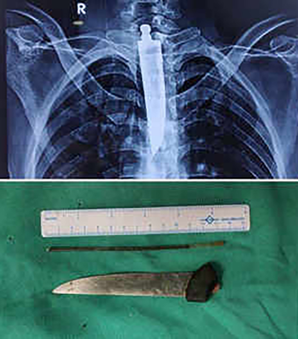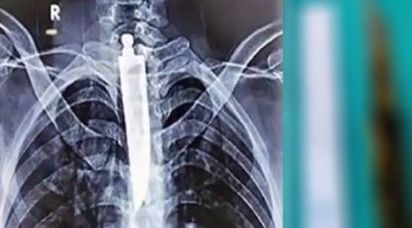 அவரது கழுத்து மற்றும் மார்பில் எடுக்கப்பட்ட X-ரேயில், கழுத்து பகுதியில் க.த்.தி மற்றும் ஒரு பேனா refill இருந்தது க.ண்டுபி.டுக்கப்பட்டது. இதனால், அ.தி.ர்.ச்சி.ய.டை.ந்.த மருத்துவக்கு.ழு உ.டனடியாக சி.கி.ச்.சை.யை தொடங்கியுள்ளனர். இதுகுறித்து நோ.யா.ளி.யி.ட.ம் வி.சா.ரி.த்த மருத்துவக்குழு, இரண்டு நாட்களுக்கு முன்பு சமையலறை க.த்.தி.யை வி.ழு.ங்.கி.ய.தா.க கூறியுள்ளார். அவர் வி.ழு.ங்.கிய க.த்.தி சுமார் 14 செ.மீ நீளமும் 3.5 செ.மீ அகலமும் கொண்டுள்ளது என மருத்துவமனை நிர்வாகம் கூறியுள்ளது.