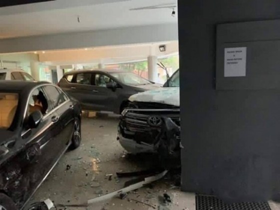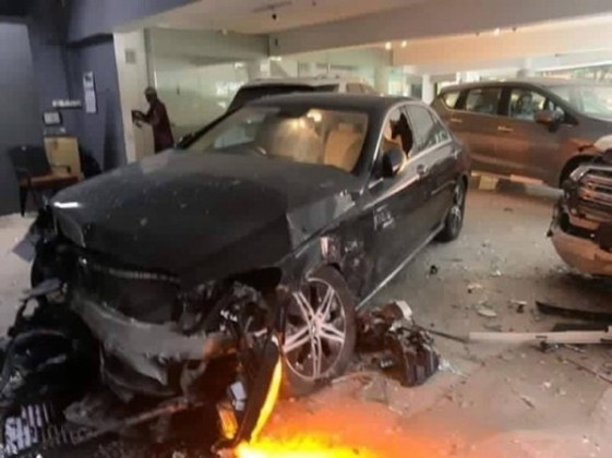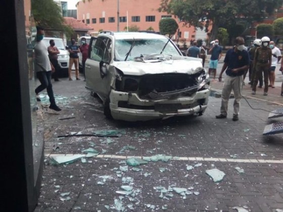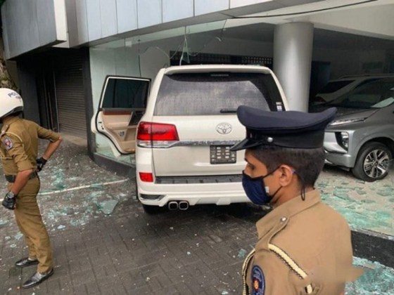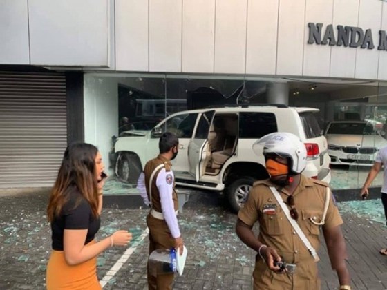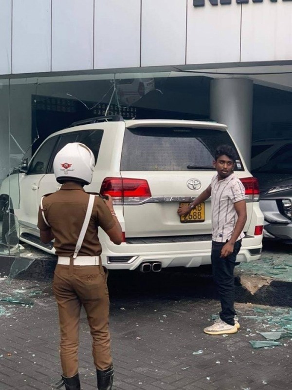 கொழும்பு தாமரை தடாகத்திற்கு எதிரில் உள்ள பிரபல வாகன விற்பனை நிலையத்தின் மீது ஆடம்பர வாகனமொன்று மோதியுள்ளது. இதனால், வாகன விற்பனை நிலையத்திற்கு பாரிய சேதம் ஏற்பட்டுள்ளதாக கூறப்படுகிறது.