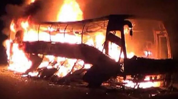 இதனால் அ தி ர்ச் சிய டைந்த சா ர தி பே ரு ந்தை உ ட னடி யாக நி று த் தி யுள்ளார். இ த னிடை யே தீ ப ற் றி யதை க வ னி த்த ப ய ணி கள் அ ல றி யடி த்து பே ரு ந்தி ல் இ ரு ந்து வெ ளி யே றினர். இ ரு ப்பி னு ம், இந்த தீ வி ப த் தில் சி க் கி ப ய ணிகளில் 3 பேர் உ ட ல் கருகி ப ரி தா பமா க ம ர ணம டை ந் துள்ளனர்.
