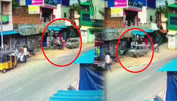 அப்பொது அந்த வழியாக அதிவேகமாக வந்த ஆம்னி வேன் பிரேக் பி.டி.க்.காத.தால் சாலையோரம் சின்றுகொண்டிருந்த சந்திரேகர் மீது மோ.தி.யது.
