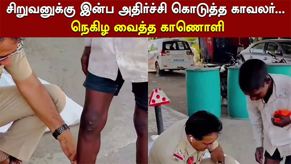 குறித்த சிறுவனின் முகத்தில் சிரிப்பு எல்லையில்லாமல் இருந்ததுடன், அந்த காவல்அதிகாரியின் காலை இரண்டு தடவை தொட்டுக்கும்பிட்டு தனது நன்றியையும் தெரிவித்துள்ள காணொளியே இதுவாகும்.
