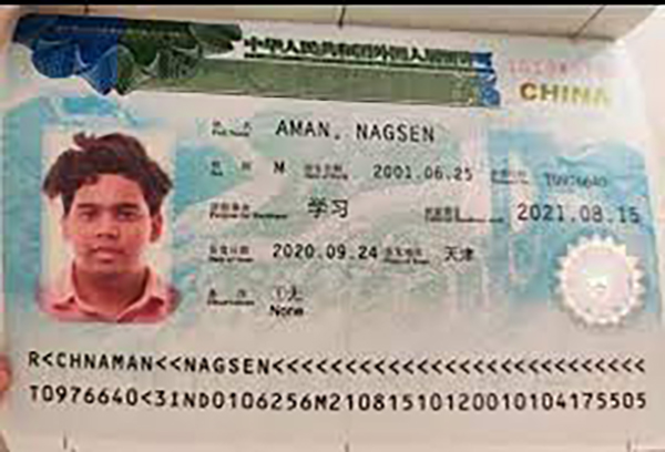 இந்திய மாநிலம் பிகாரில் கயா மாவட்டத்தைச் சோ்ந்தவா் அமன் நாக்சென் (Aman Nagsen). 20 வயதாகும் இவா் சீனாவின் டியான்ஜின் நகரில் உள்ள (Tianjin Foreign Studies University) பல்கலைக்கழகத்தில் வணிக நிா்வாகம் படித்து வந்தாா்.