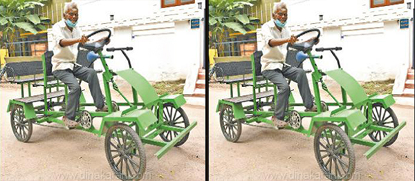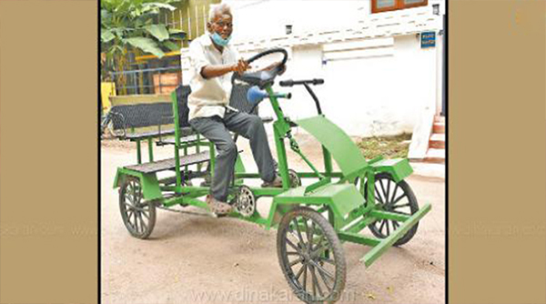 சுற்றுச்சூழலை பாதிக்காத வகையில் 90 வயது மாஜி தாசில்தார் ‘பெடல் கார்’ கண்டுபிடித்து சாதனை!!