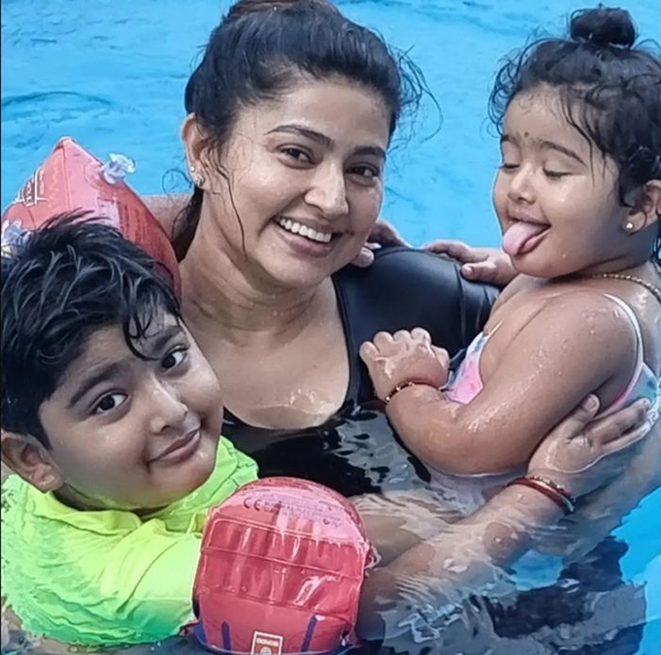 தற்பொழுது இரண்டு குழந்தைகளுக்கு தாயாகவும் இருக்கும் நடிகை சினேகா மீண்டும் சினிமாவில் நடிக்க ஆயத்தமாகி வருகிறார். தன்னுடைய இன்ஸ்டாகிராம் பக்கத்தில் ஆக்டிவாக இருக்கும் இவர் அவ்வப்போது புகைப்படங்களை வெளியிடுவது வழக்கம். அந்த வகையில் தற்போது தன்னுடைய குழந்தைகளுடன் நீச்சல் குளத்தில் குதூகலமாக இருக்கும் புகைப்படங்கள் சிலவற்றை வெளியிட்டு ரசிகர்களின் கவனத்தை ஈர்த்துள்ளார்.