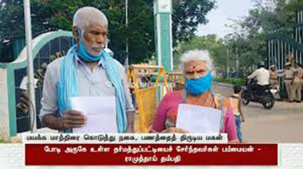 ‘எங்களை ஏ மாற்றி எடுத்துக்கொண்ட நகை, பணம் ஆகியவற்றை மீ ட் டு, மகன் புவனேஷன் மீது நடவடிக்கை எடுக்க வேண்டும். அவனுக்கு தானசெட்டில்மென்ட்டாக வழங்கிய வீட்டின் பத்திரத்தை ரத்து செய்து மாவட்ட ஆட்சியர் உத்தரவிட வேண்டும்’ என கண்ணீர் மல்க வேண்டுகோள் விடுத்துள்ளனர்.