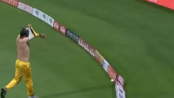 அப்போது வி.ய.ர்வையால் ஜெர்சி ஈ.ர.மாகிவி.ட்.ட.தால் வேறு ஜெர்சியை மாற்ற தயாரானார். அப்போது பேட்ஸ்மேன் ஒரு ஷாட் அ.டி.க்.க அது நேராக பவுண்டரிக்கு விரைந்து வந்துக்கொ.ண்.டி.ரு.ந்தது.
