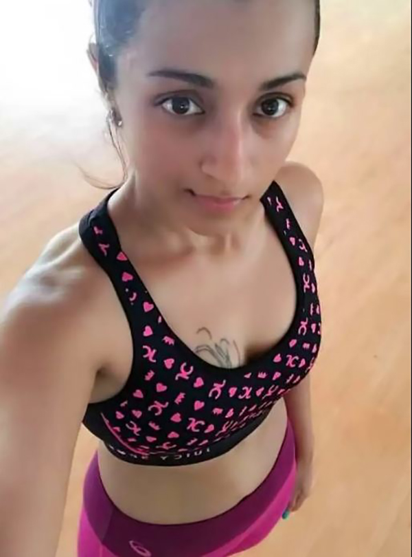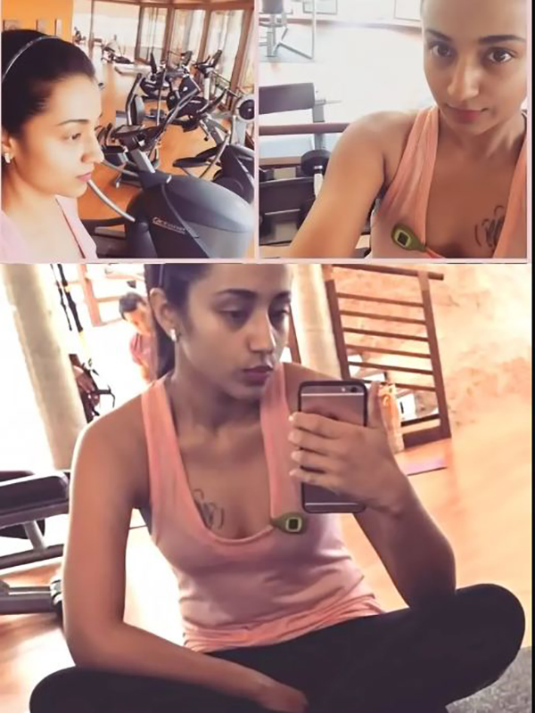 டாப் ஆங்கிளில் மார்பின் மேல் குத்தியுள்ள டாட்டூ தெரிய காட்டி திணறடிக்கும் திரிஷா!!