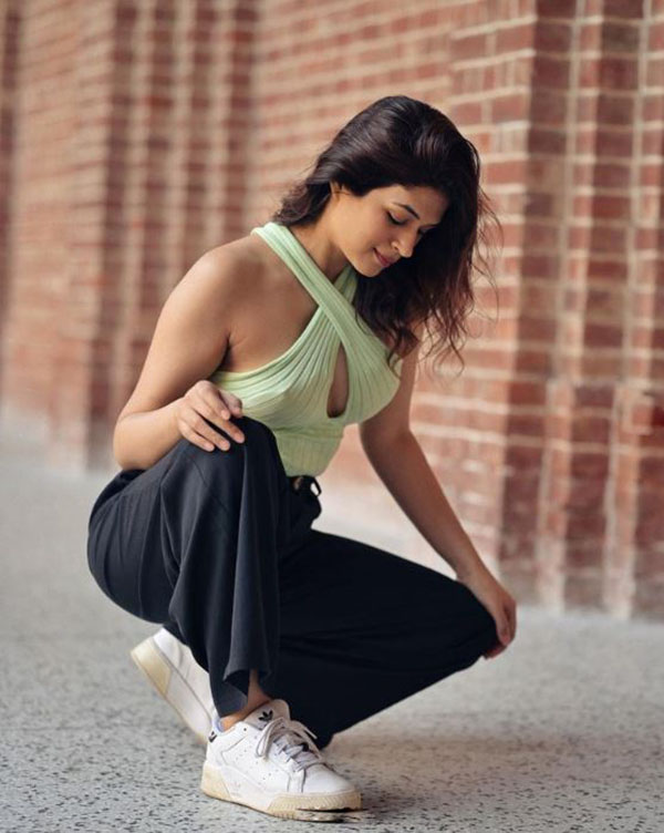 தொடர்ந்து வெளியிட்டு தனது ரசிகர்களை அடிக்கடி சந்தோஷப்படுத்தி வருகிறார். அந்த வகையில் தற்போது, முன்னழகை காட்டி வெறித்தனமாக போஸ் கொடுத்து ரசிகர்களை சுண்டி இழுத்துள்ளார்.