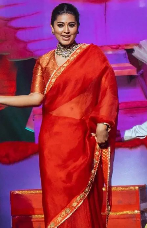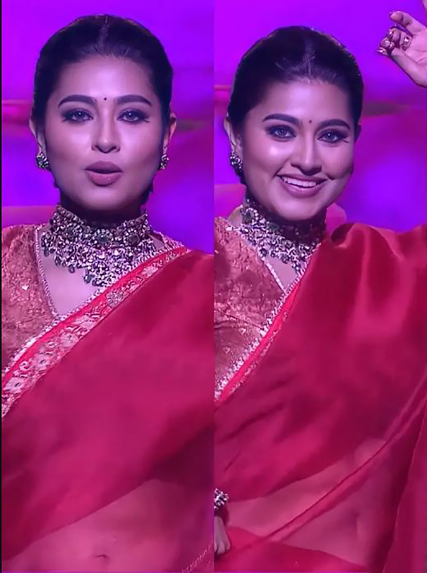 இதற்காக அன்றாடம் உடற்பயிற்சியையும் செய்து வருகின்றார். அவ்வப்போது திரை விழாக்களில் கலந்து கொள்ளும் நடிகை சினேகா சமீபத்தில் ஒரு விழாவில் கலந்துகொண்டார். சிகப்பு நிறத்திலான ட்ரான்ஸ்பரண்ட் புடவை அணிந்து கொண்டு