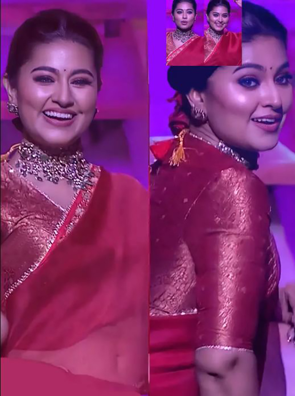 ட்ரான்ஸ்பரண்ட் புடவையில் அங்க அழகு எடுப்பாக தெரிய ஆட்டம் போட்ட சினேகா!!