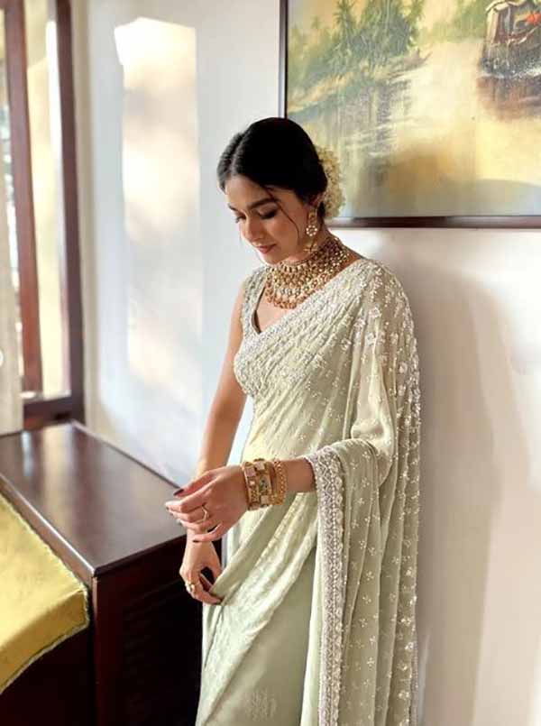 ட்ரான்ஸ்பிரன்ட் புடவையில் கவர்ச்சி காட்டி மயக்கிய கீர்த்தி சுரேஷ்!!