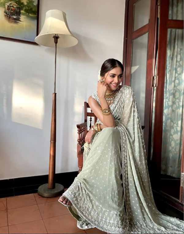 கியூட்டான புகைப்படங்களை வெளியிட்டு வெளியிட்டு வருகிறார். இந்நிலையில் தற்போது கண்ணாடி போன்ற ட்ரான்ஸ்பிரன்ட் புடவையில் லிமிட்டான கவர்ச்சி காட்டி ரசிகர்களை கவர்ந்திழுத்துள்ளார்.