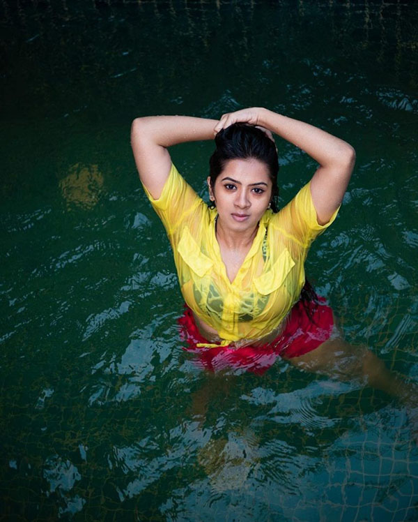 தண்ணிக்குள்ள அழகை அப்படியே காட்டி போஸ் கொடுத்த லாஸ்யா நாகராஜ்!!