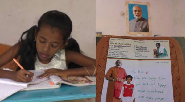 தமிழகத்தில் ஏழை சிறுமி ஒருவரின் படிப்பிற்காக பிரதமர் நரேந்திர மோடி, கடந்த நான்கு ஆண்டுகளாக தன்னுடைய சொந்த செலவில் படிக்க வைத்து வருகிறார்.