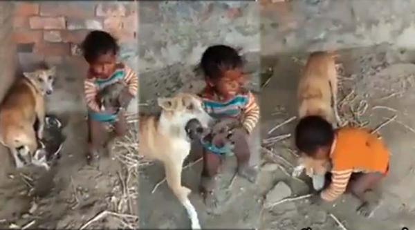 ஆனால் தாய் நாயோ தான் ஈன்ற குட்டியினை குழந்தையிடமிருந்து மிகுந்த போராட்டத்தினை மேற்கொண்டு மீட்கும் காட்சியே இதுவாகும்.