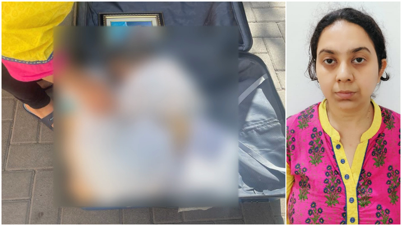 மேற்கு வங்கத்தைச் சேர்ந்த அந்தப் பெண் பெங்களூரில் பிசியோதெரபிஸ்ட்டாக பணியாற்றி வருகிறார். அவர் கொண்டுவந்த சூட்கேஸில் கொலை செய்யப்பட்ட அவரது தாயின் உடலும், தந்தையின் பிரேம் செய்யப்பட்ட படமும் காணப்பட்டதாகவும் காவல்துறையினர் சொல்கின்றனர்.