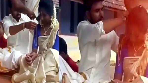 அவர் என்ன தான் முயற்சி செய்தாலும் கடைசி வரையில் அவரால் தாலியை கட்ட முடியவில்லை. தாடுமாறிக் கொண்டிருந்த மாப்பிள்ளையை பார்த்து கடுப்பாகிய மணப்பெண்ணை தாலியை இப்படி தான் கட்ட வேண்டும் என சொல்லி கொடுக்கிறது.