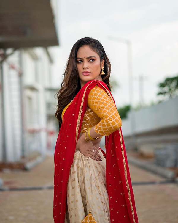 தாவணி பாவாடையிலும் தளும்ப தளும்ப கவர்ச்சி காட்டி ஹாட் போஸ் கொடுத்த நந்திதா ஸ்வேதா!!