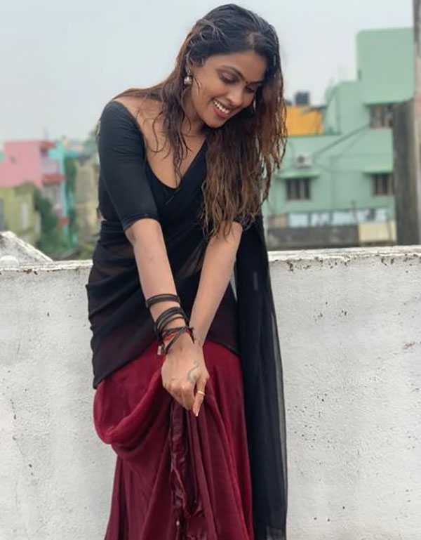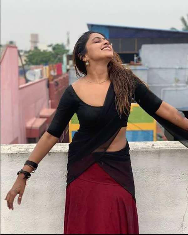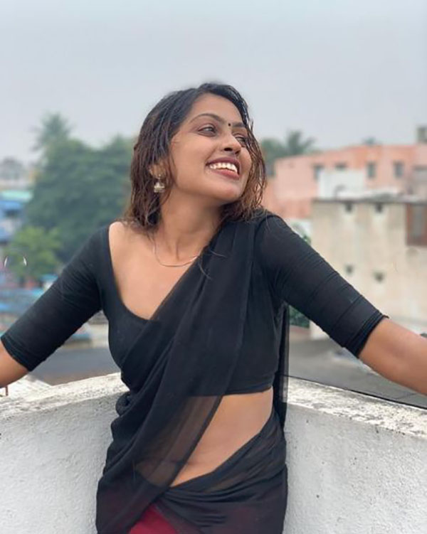 ஆனால், விதவிதமான உடைகள், மேக்கப், போட்டோஷூட் என்றெல்லாம் இவர் செலவு செய்வதில்லை. வீட்டில் அணியும் தாவணி பாவாடை மற்றும் புடவையிலேயே இடுப்பு மற்றும் முன்னழகை காட்டி புகைப்படங்களை வெளியிடுவது இவரின் வழக்கம்.