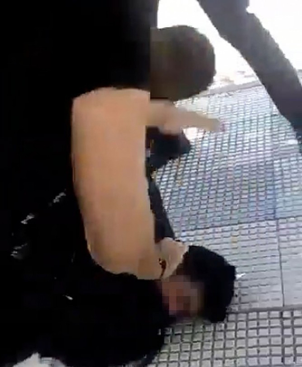 இதனையடுத்து அங்கிருந்த பொலிசார் சிறுவனை மடக்கிப்பிடித்ததுடன், தரையில் முகத்தை அழுத்தியதுடன், பொலிசார் ஒருவர் சிறுவனின் கழுத்தில் முழங்காலை அழுத்தியுள்ளார்.