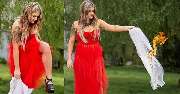 ஆனால் இங்கு தனது விவாகரத்தை பெண் ஒருவர் கொண்டாடி போட்டோசூட் நடத்தி அனைவரையும் வியப்படையச் செய்துள்ளார். அமெரிக்காவை சேர்ந்த லாரன் புரூக்(31) என்ற பெண் ஒருவர், போட்டோஷூட்டில் ஒன்றில் அவரது திருமண ஆடையை எரித்து கணவருடனான விவாகரத்தை கொண்டாடியுள்ளார்.